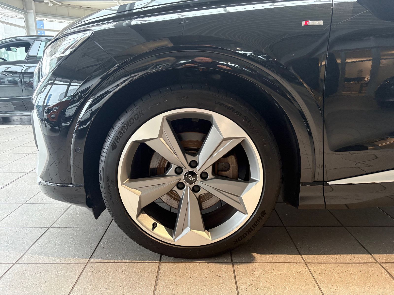 Anhängerkupplung Vorbereitung, Assistenz-Paket plus, Audi connect (Internetbasierende Dienste), e-tron Aufladesystem, Exterieur-Paket S line, Gepäckraumklappe elektr. betätigt (öffnen + schliessen) mit sensorgesteuerter Entriegelung, Heizungs-/Klimaanlage: Wärmepumpe, Interieur-Paket: S line mit Sportsitze, Sitzbezug Stoff/Kunstleder, schwarz, Klima-Paket, Komfort-Paket, Kontur / Ambientebeleuchtungs-Paket (plus), Lenkrad (Sport/Leder - Doppelspeichen, oben / unten abgeflacht) mit Multifunktion und Schaltfunktion, LM-Felgen vorn/hinten: 8,5x21 / 9x21 (5-Arm-Rotor-Design, EVO, titangrau matt, glanzgedreht, Audi Sport), Matrix-LED-Scheinwerfer, Metallic-Lackierung, Multi-Media-Interface MMI Navigation Plus mit MMI Touch, Reifensystem Performance, Sicherheits-Paket plus, Sitzheizung vorn, Sound-System DSP / Audi Sound-System, Verglasung hinten abgedunkelt (Privacyverglasung), Voll-Lackierung, Wandhalterung Ladefunktion (e-tron)