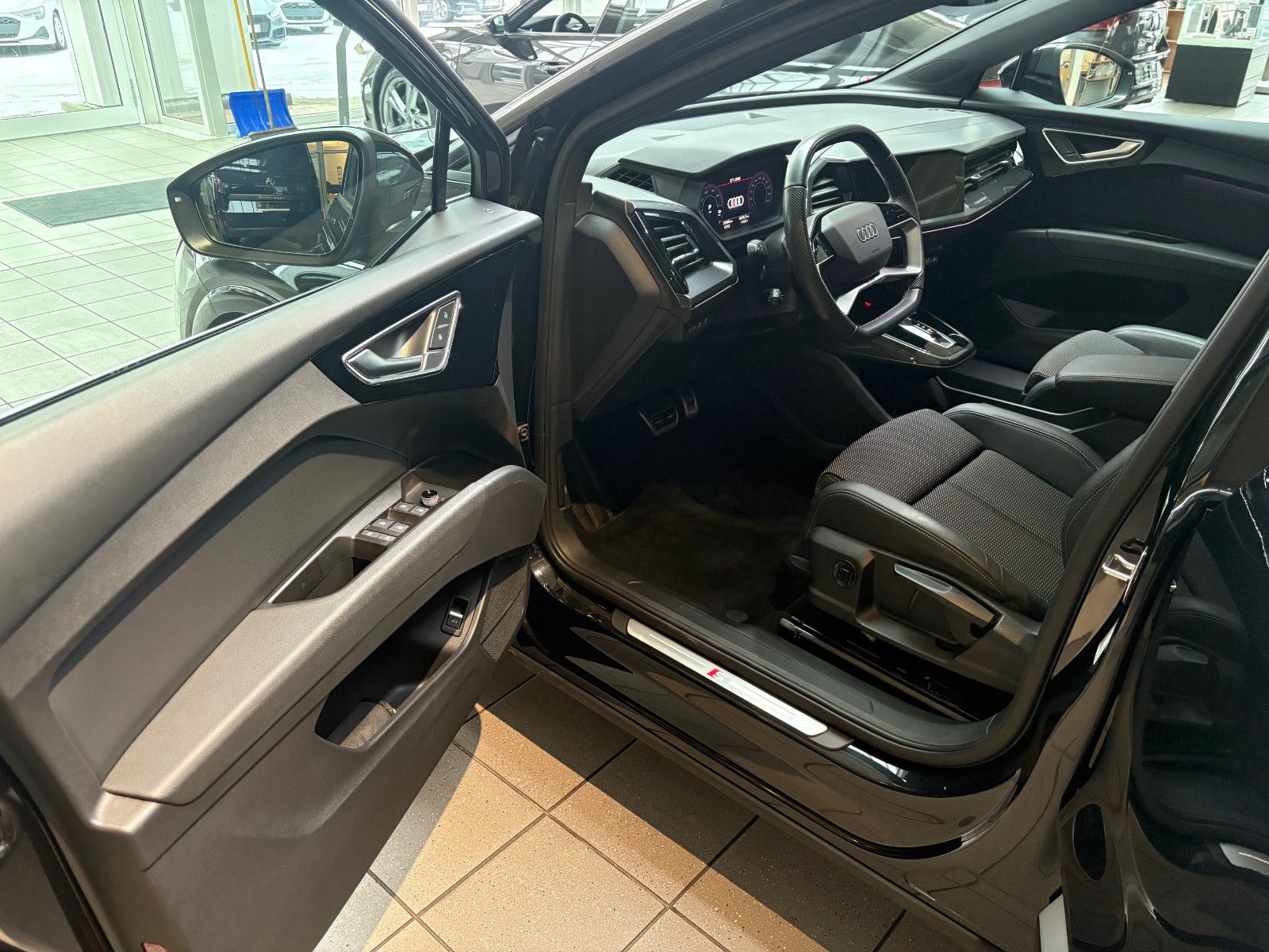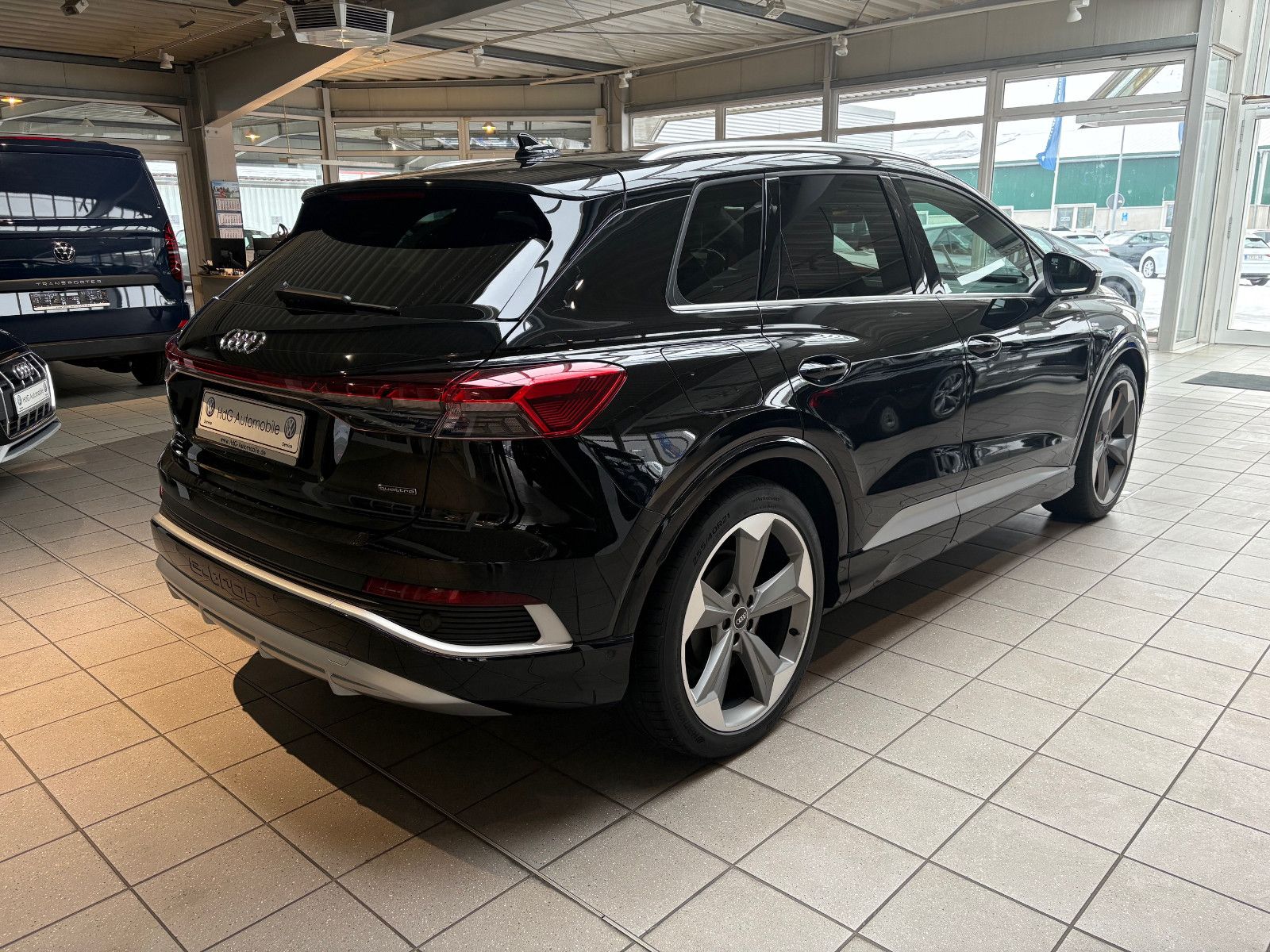 Airbag Beifahrerseite abschaltbar, Airbag Fahrer-/Beifahrerseite, Akustischer Fußgängerschutz, Außensound (e-sound), Audi connect (Notruf- und Assistance-System), Audi connect (Remote / Control), Außenspiegel Wagenfarbe, Dachreling (Aluminium), Elektromotor 220 kW (cont. 77 kW), Fahrassistenz-System: Ausweich-Assistent, Fahrassistenz-System: Bremsassistent (Audi pre sense front), Fahrassistenz-System: Spurverlassenswarnung, Fensterheber elektrisch vorn + hinten, Frontscheibe Klarglas, Fußmatten Velours, Geschwindigkeits-Begrenzeranlage, Getriebe für Elektrofahrzeug, Glanz-Paket, HV-Batterie 82 kWh brutto / 77 kWh netto, Isofix-Aufnahmen für Kindersitz an Beifahrersitz und Rücksitz, Karosserie: 4-türig, Komfort-Standklimatisierung, Kopf-Airbag-System (Sideguard), Ladedose (AC / DC), Ladekabel mit Typ 2-Stecker (Mode 3), On-Board-Ladegerät (bis 11 kW), Progressivlenkung, Radstand 2764 mm, Reifenkontroll-Anzeige, Seitenairbag vorn, Seitenairbag vorn mitte (Interaktionsairbag), Steckdose (12V-Anschluß) in Mittelkonsole vorn, Wärmeschutzverglasung grün getönt
